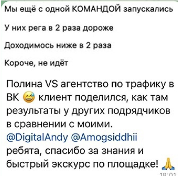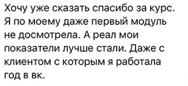 Информации очень много, есть готовая и конкретная система. И мне понравилось, что это не какие-то домыслы, как это в таргете: может это работает так, а может и вот так, бывает не понятно. А здесь есть конкретная система, пошаговый алгоритм, по которому можно двигаться и увеличивать результаты